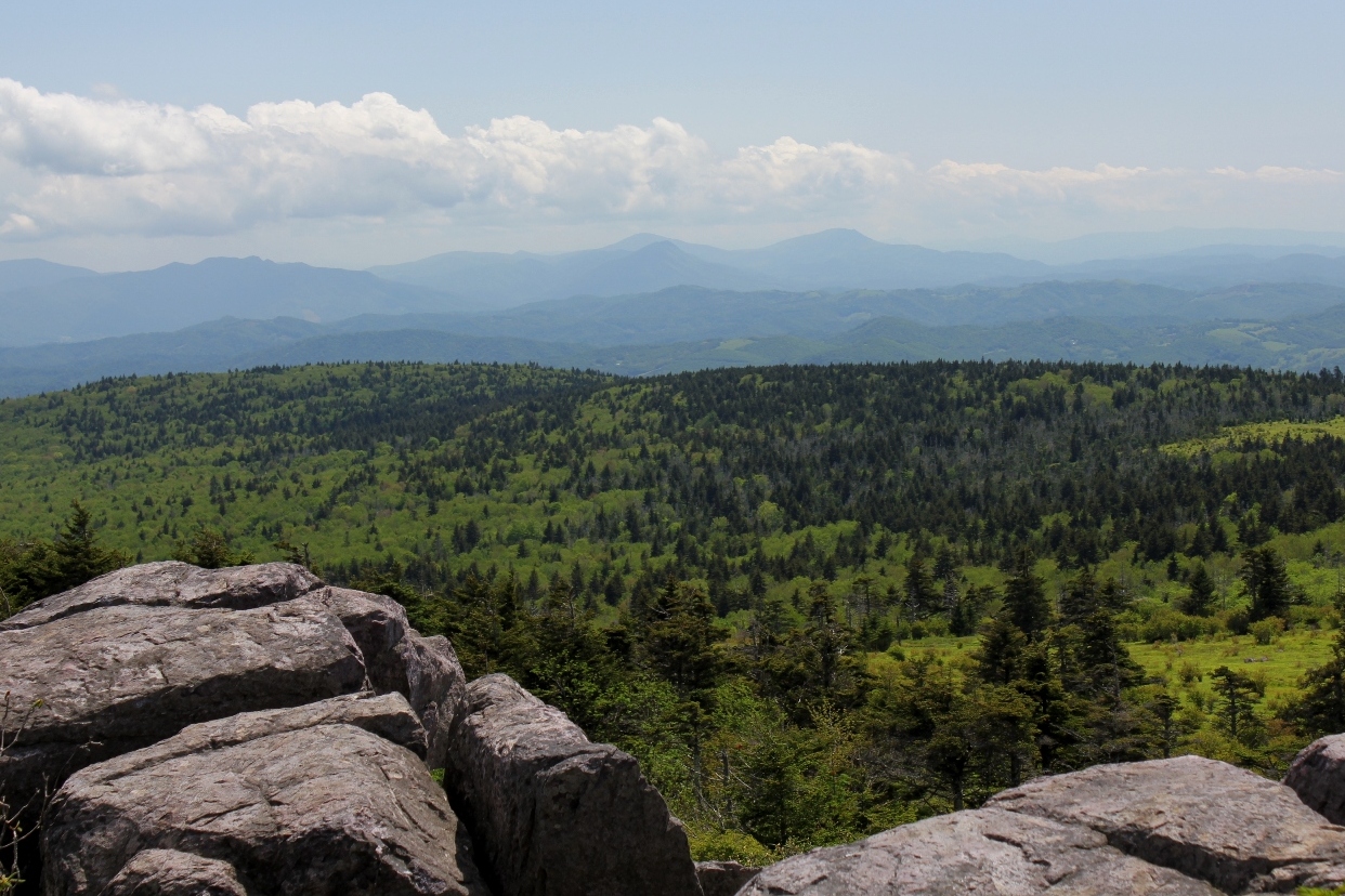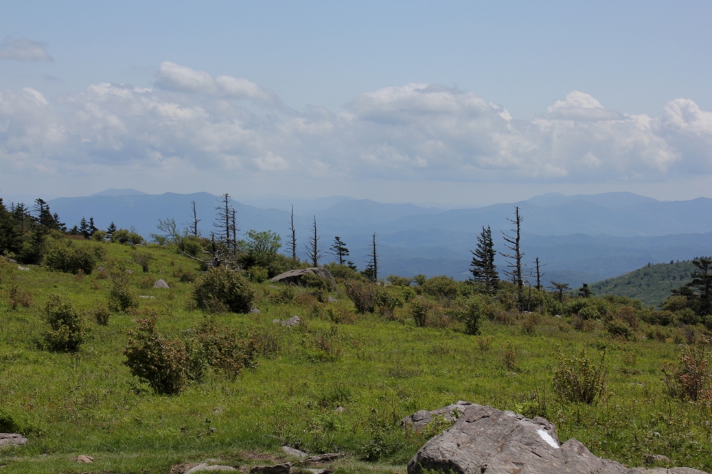 Most of Wilburn Ridge is above treeline in “balds,” huge sections of the mountain where there are only grass, underbrush, and rocky outcroppings. This is more like hiking in the Western mountain ranges than anywhere else in the Southeastern United States.