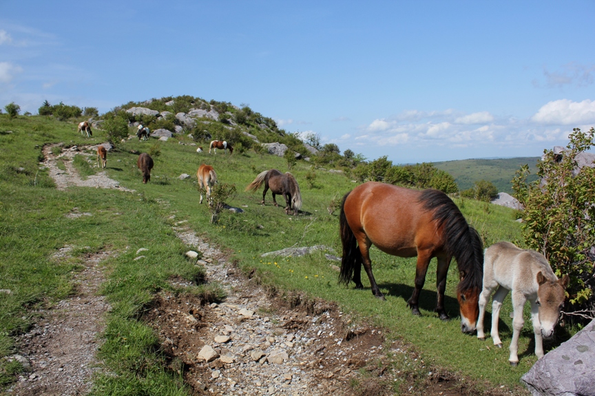 The ponies are awesome to observe as you are hiking up the ridge. While completely wild, they are not afraid of the hikers and usually continue grazing. I have even experienced them waking up backpackers by grazing close to tents in the early morning hours. Here is a mother with her young: