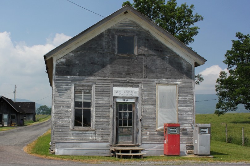 Old Gas Station June 12, 2011 1015 × 677 Burkes Garden and The Varmint Half-Marathon The sign above the door reads “BURKES GARDEN, VA. – God’s Land”