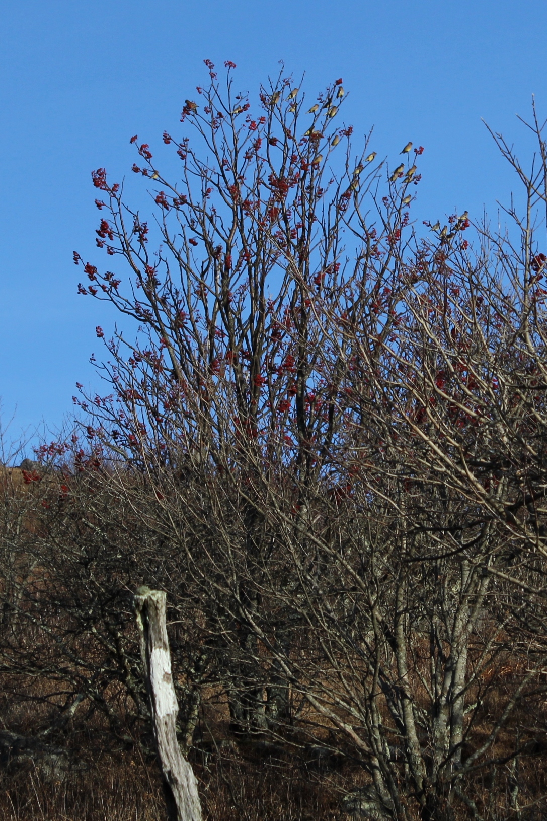 The large Hawthorn bushes with their clumps of red berries reminded us that fall was almost over, and the Christmas season fast approaching. Soon similar berries would adorn mantles and wreaths as holiday decorations in people’s homes far below.