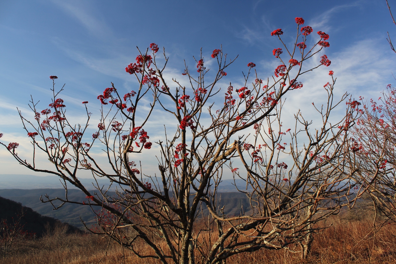 Hawthorn Bush with Berries Screens View of Iron Mountain and Clinch Mountain