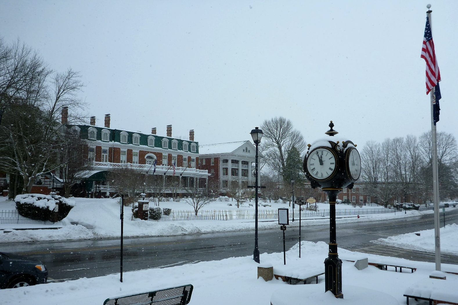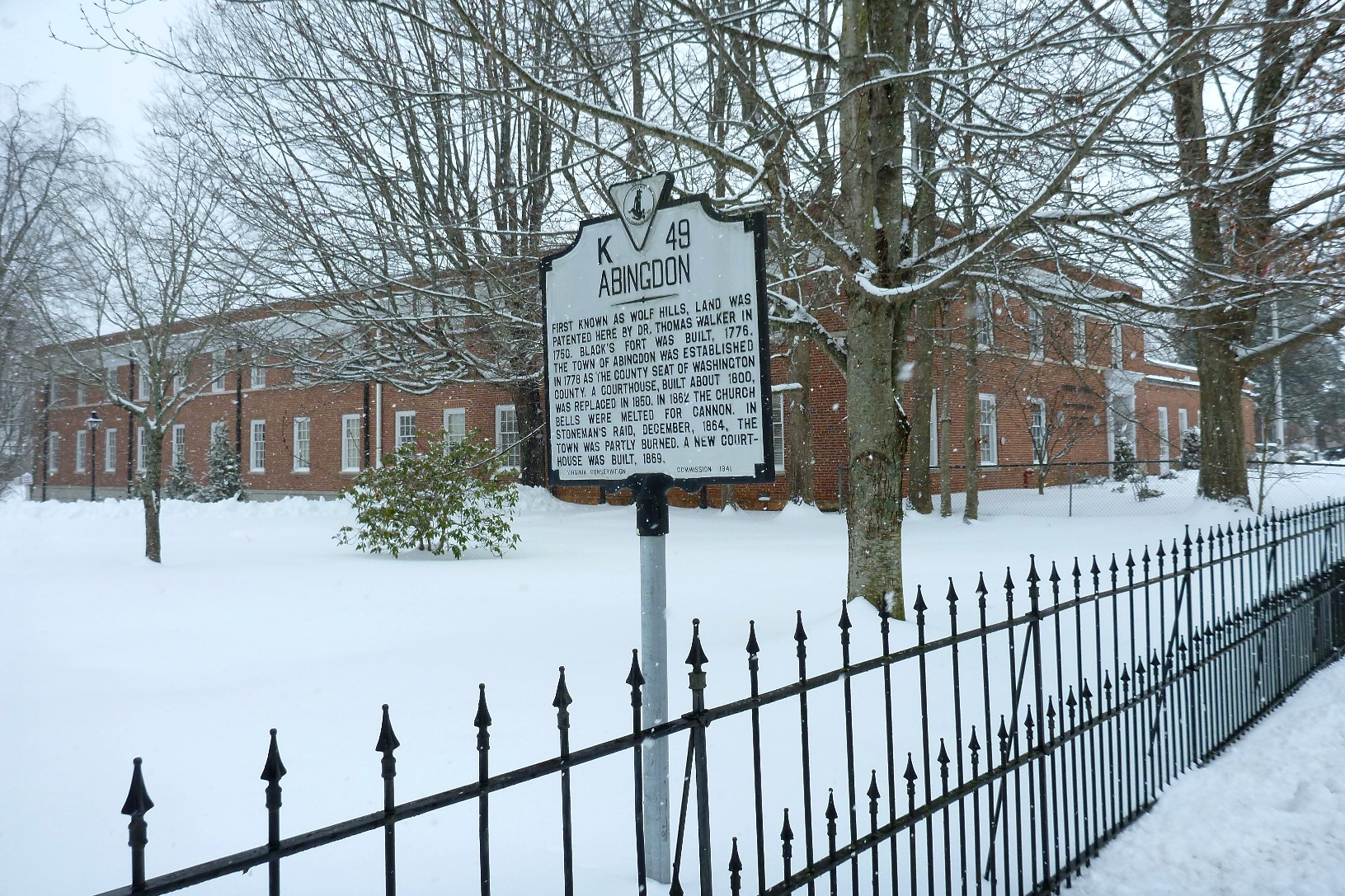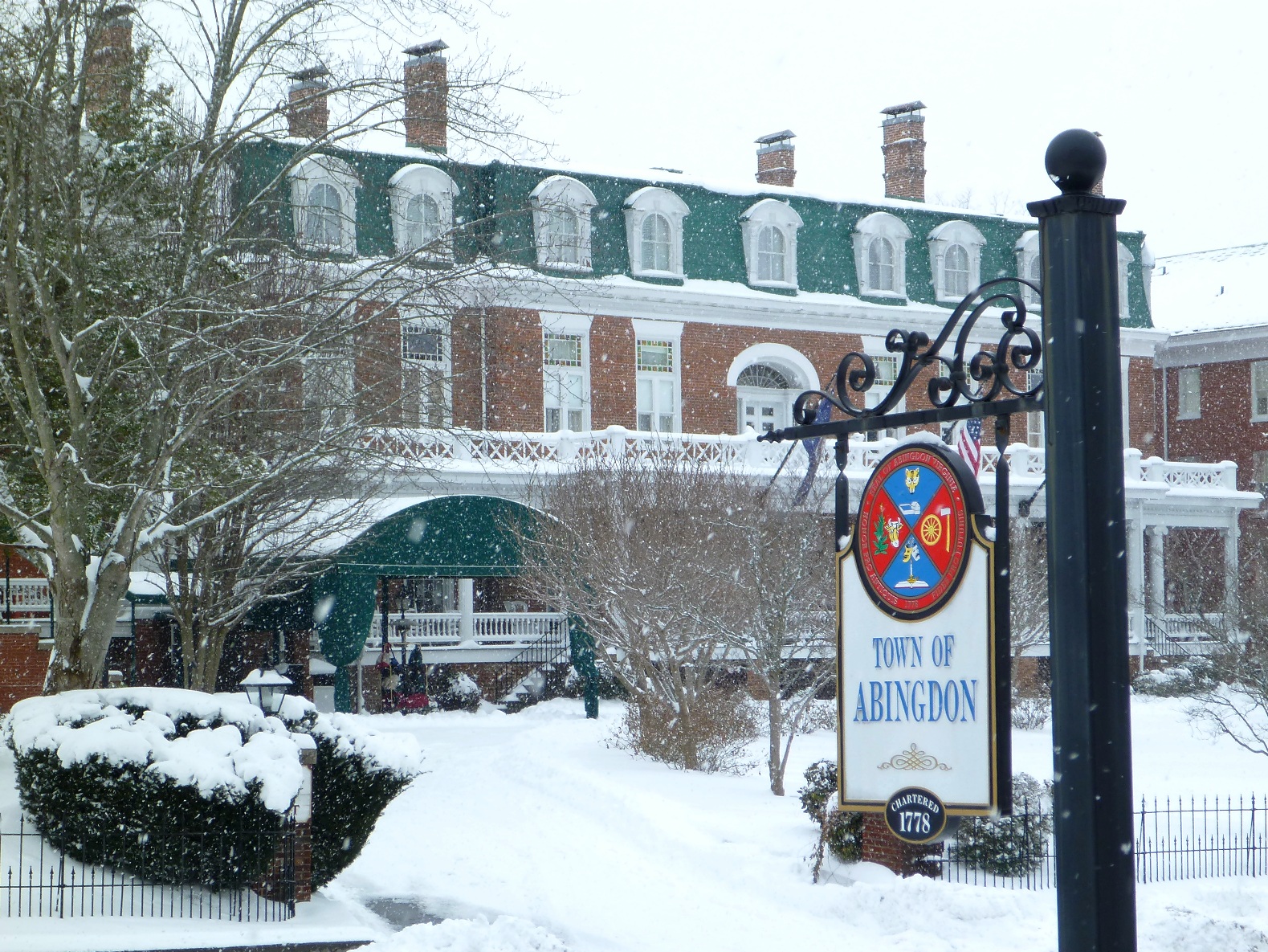 My wife and I walked through Abingdon around noon, and usually busy downtown was largely abandoned, allowing for unobstructed photos of the snow-laden historical buildings around town.