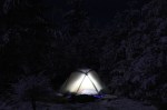That night, I slept in my 15 degree-rated sleeping bag on a sleeping pad, with polar fleece pants, two undershirts, a fleece jacket, wearing a down jacket, a hat, and gloves. My feet were covered with wool socks and insulated slippers. And yet, my feet and hands were still cold. My friend, who brought his 0 degree-rated “Never Summer” down sleeping bag, fared no better. Let’s just say, it was very cold.