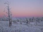 As the evening sun set, the entire sky in the east (the direction opposite from the sun) began to glow pink with a purplish band at the horizon. The rime-encrusted trees and brush, which had their own bluish-white hue, looked otherworldly. The side of the mountain basked in the alpenglow. In the course of my life I have seen this phenomenon on occasion in the Rockies and in the Alps, but never so pronounced in our region as it was this evening.
